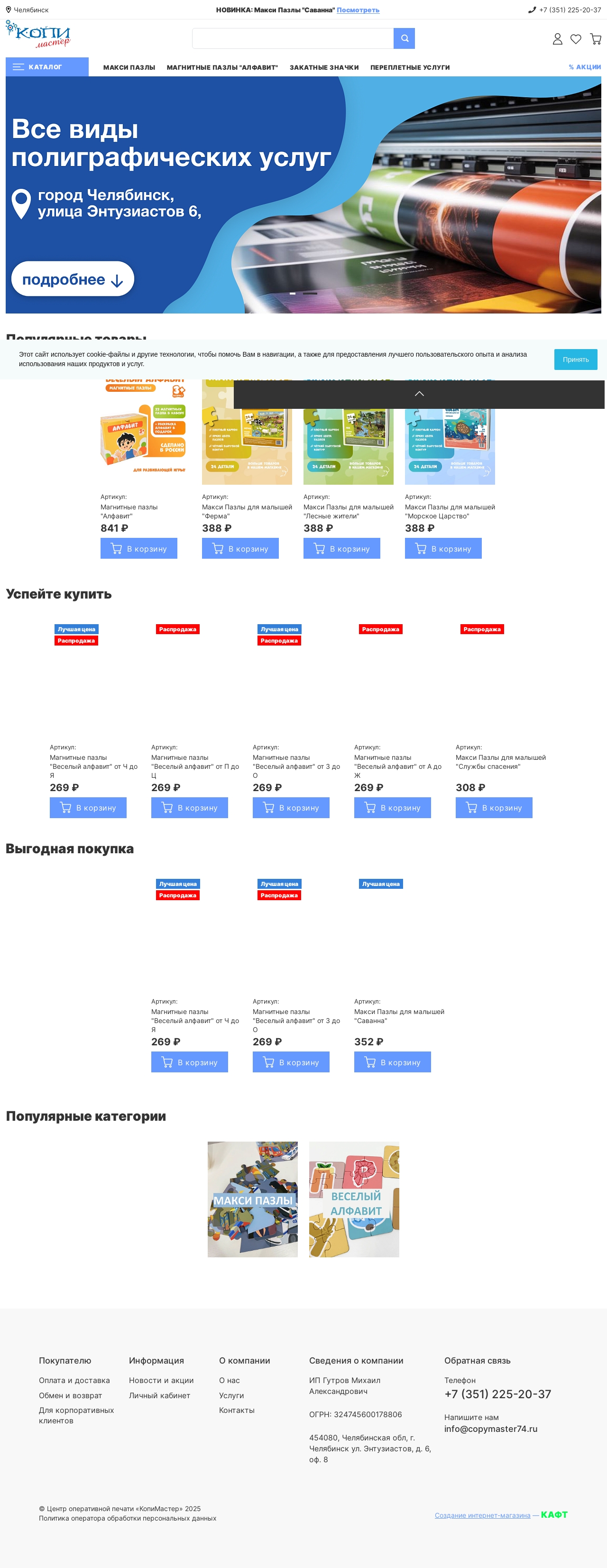 Копимастер – копи-центр полного производственного цикла с широким перечнем услуг и ассортиментом производимой продукции. В связи с расширением деятельности компании и спектра услуг было принято решение о создании представительства компании в Интернет.